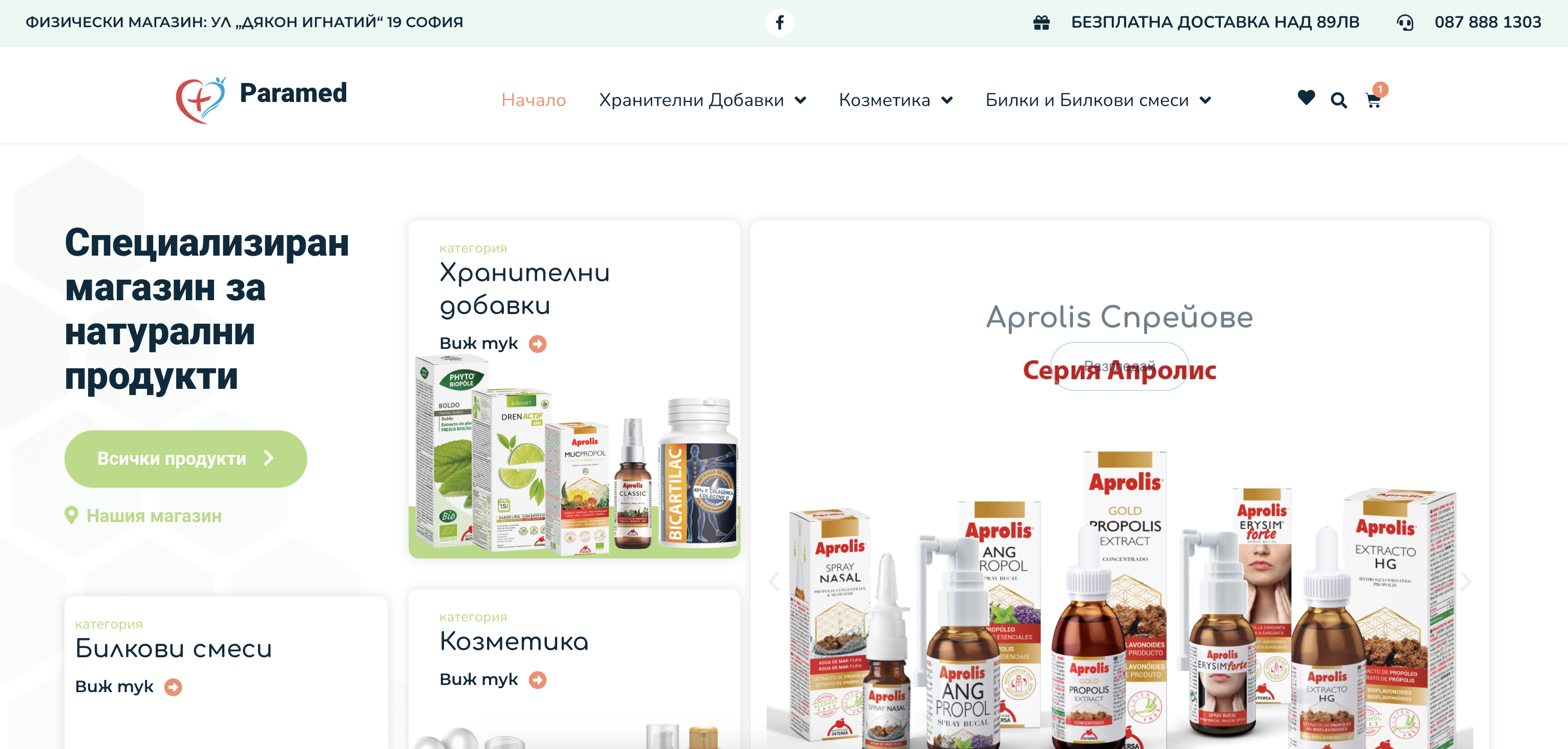 С радост представяме дизайна и разработката, извършени от екипа на CreaDev за Парамед. Нашата работа в изграждането на сайта paramed.bg се фокусира върху създаването на удобен за използване онлайн магазин и съвременна визия. Целта ни беше да да направим онлайн магазин, който предлага на клиентите възможността да открият разнообразие от био и здравословни храни, билки, тинктури, хранителни добавки и козметика.