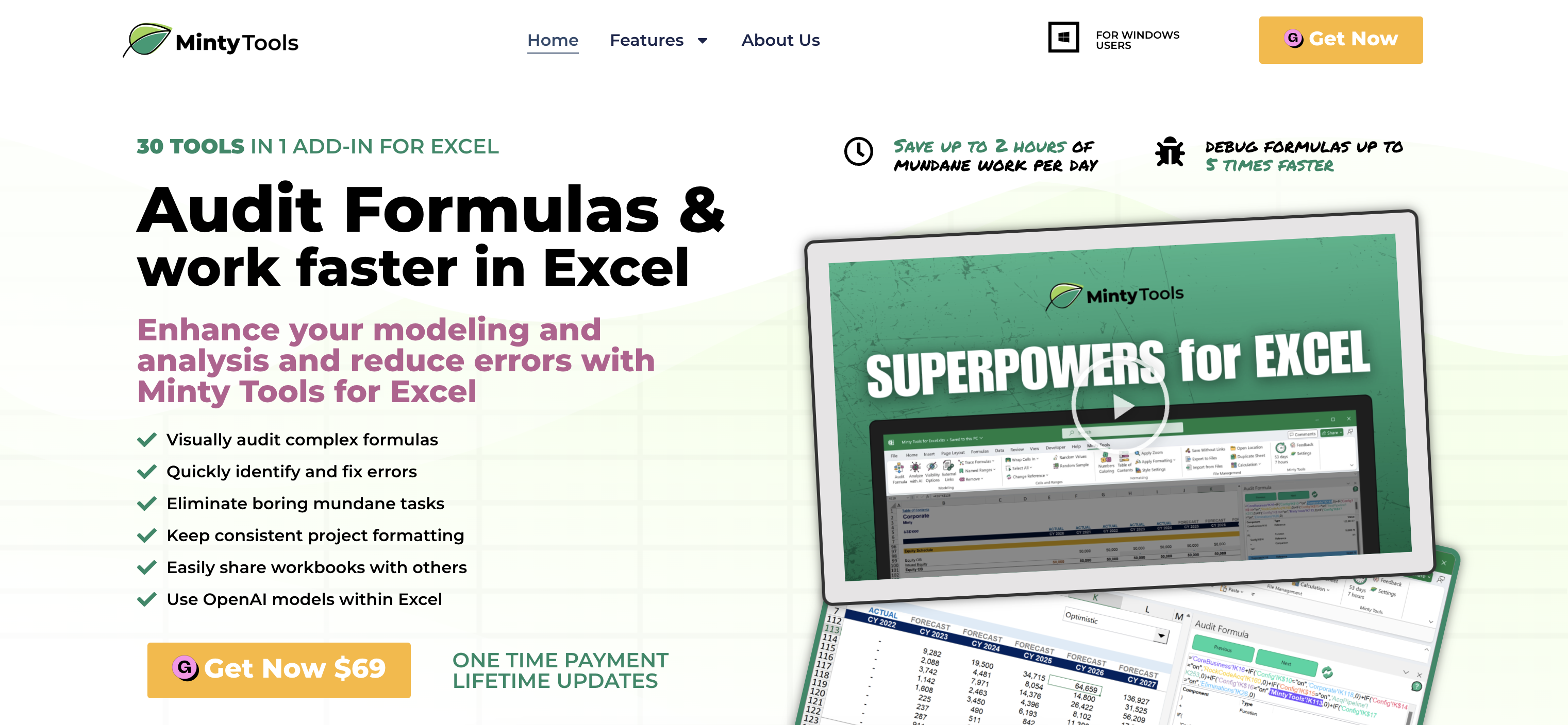 Дизайн и разработка на лого и лендинг страница за Minty Tools – плъгин за Excel