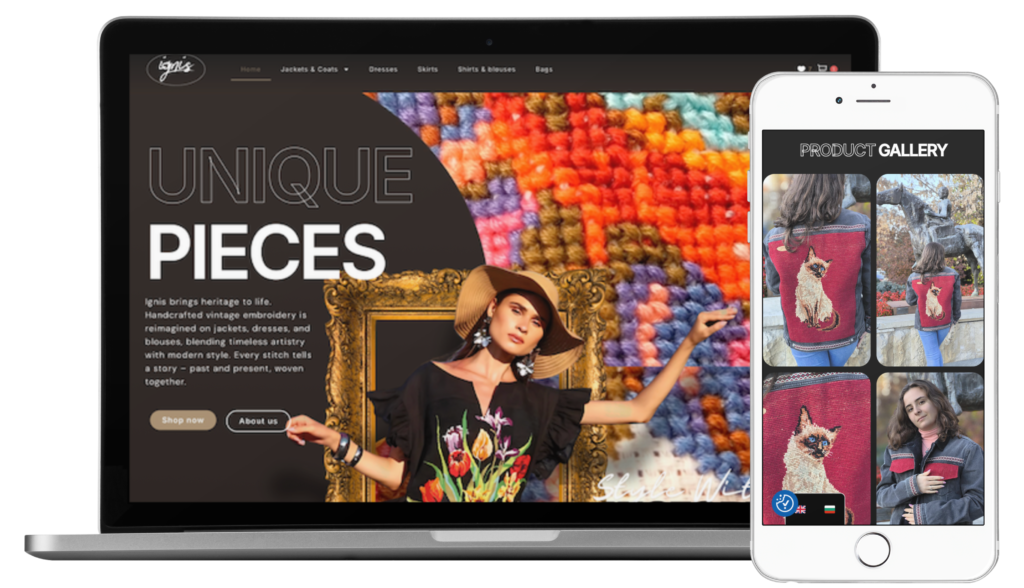 За Ignis Atelier реализирахме пълен редизайн на онлайн магазина, като обновихме изцяло визията и функционалността с фокус върху по-добро потребителско изживяване. Извършихме интеграция с Etsy магазин, която улеснява управлението на продуктите и продажбите. Добавихме и двуезичност чрез автоматичен превод, за да направим сайта достъпен за по-широка международна аудитория.